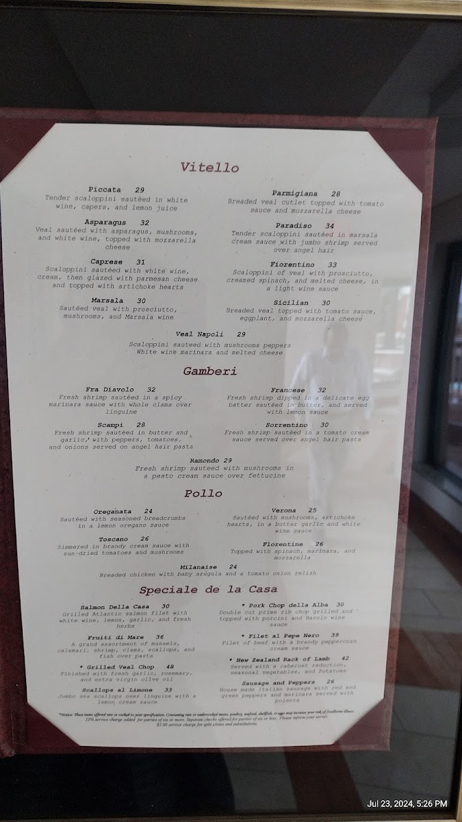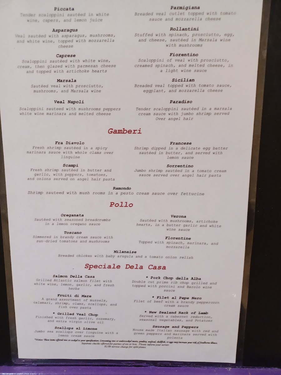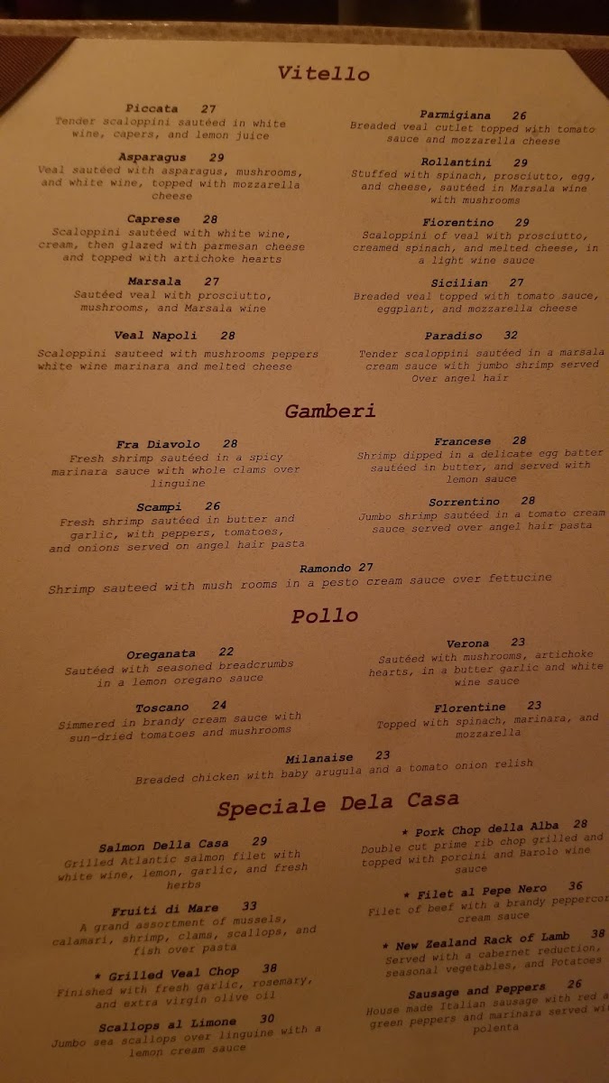 Recent diners rave about the Sorrentino with its rich tomato cream sauce, generously adorned with shrimp, and the fresh catch of the day—flounder and scallops al Limone have both received glowing reviews. The menu is diverse, offering delightful options like she crab soup, veal, filet mignon, and an assortment of pasta. Guests highlight the attentive service that makes every visit feel like a celebration. The warm atmosphere and exceptional hospitality transport you to a Tuscan family home, ensuring your dining experience is nothing short of unforgettable.